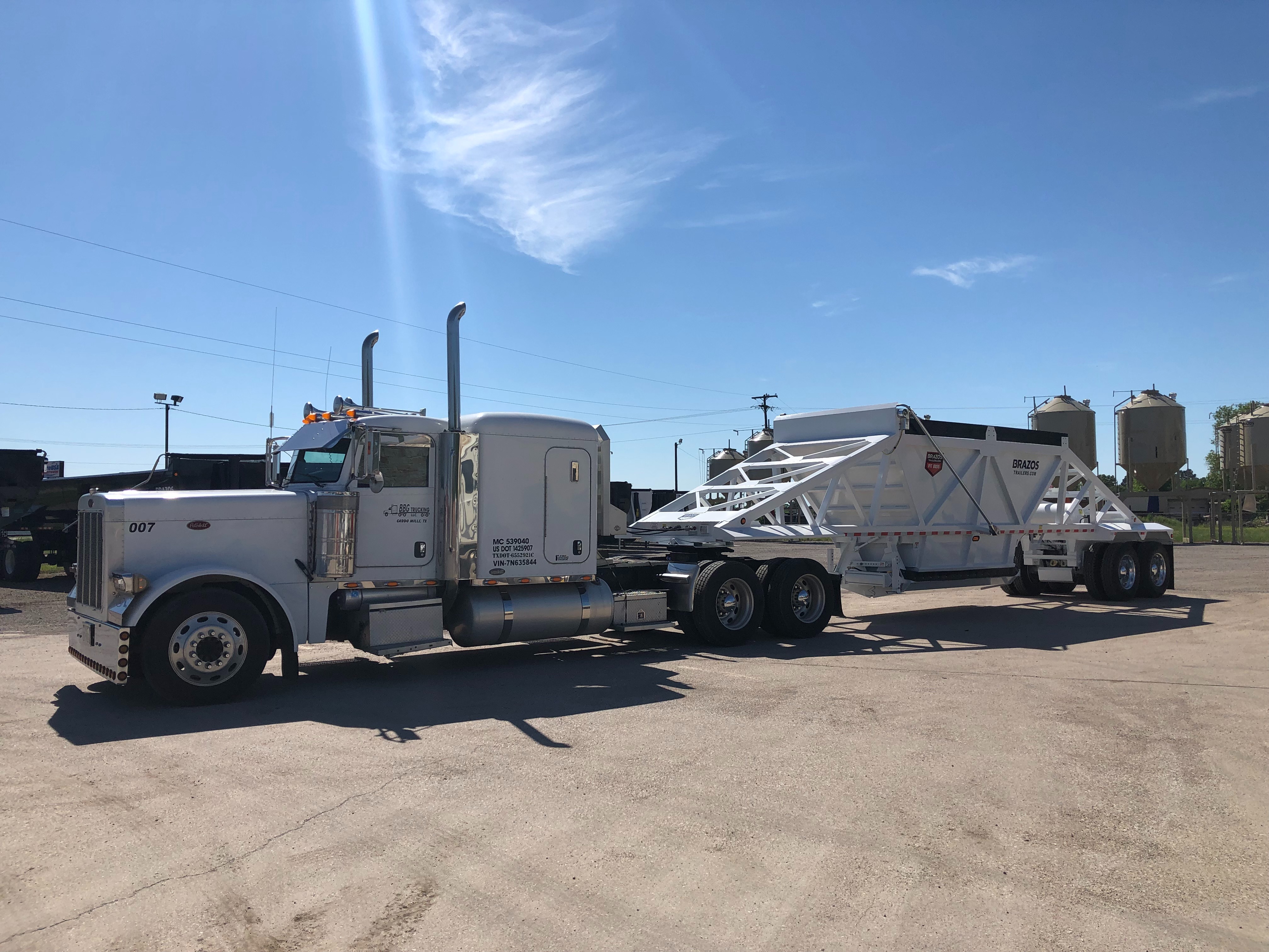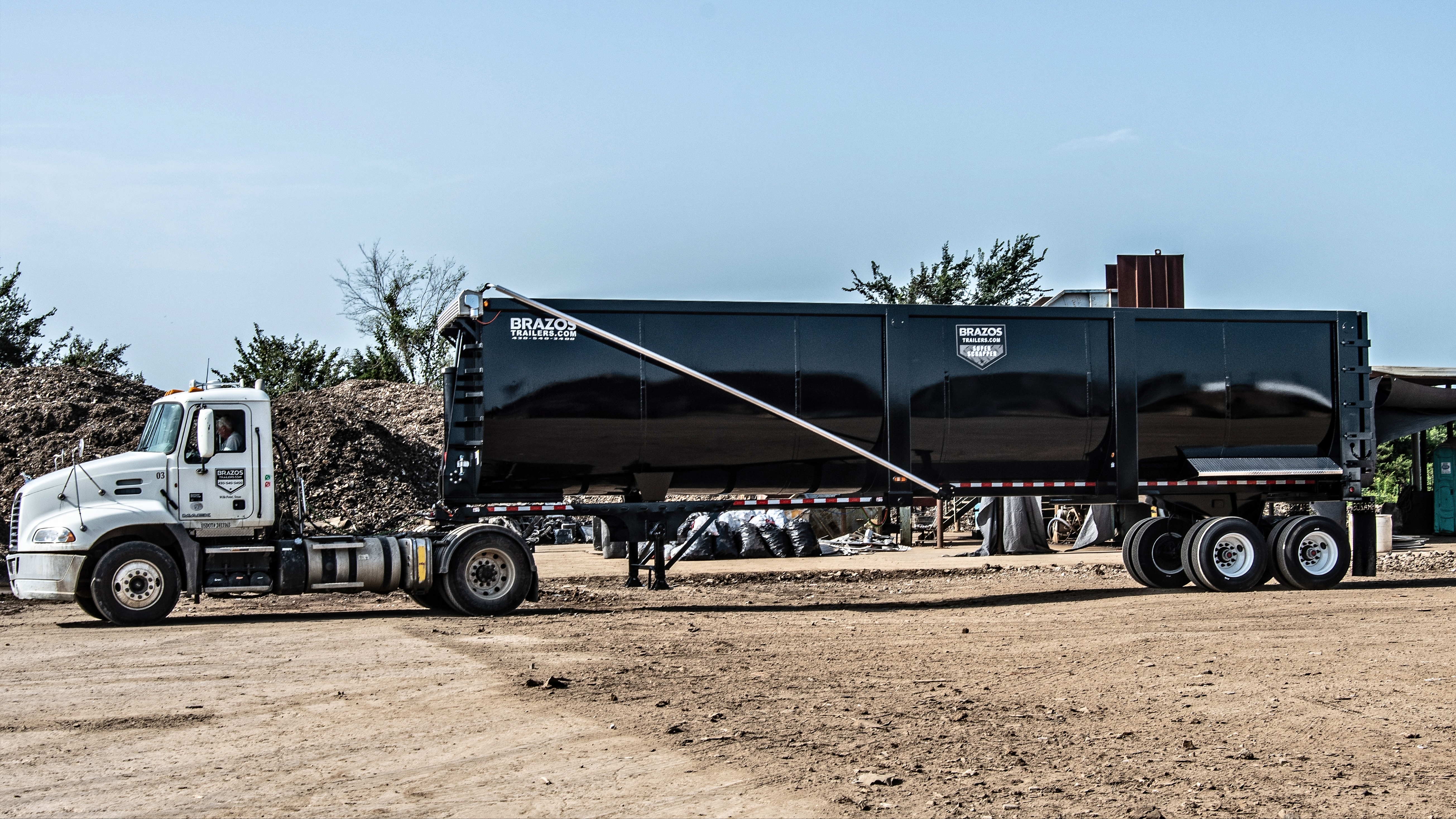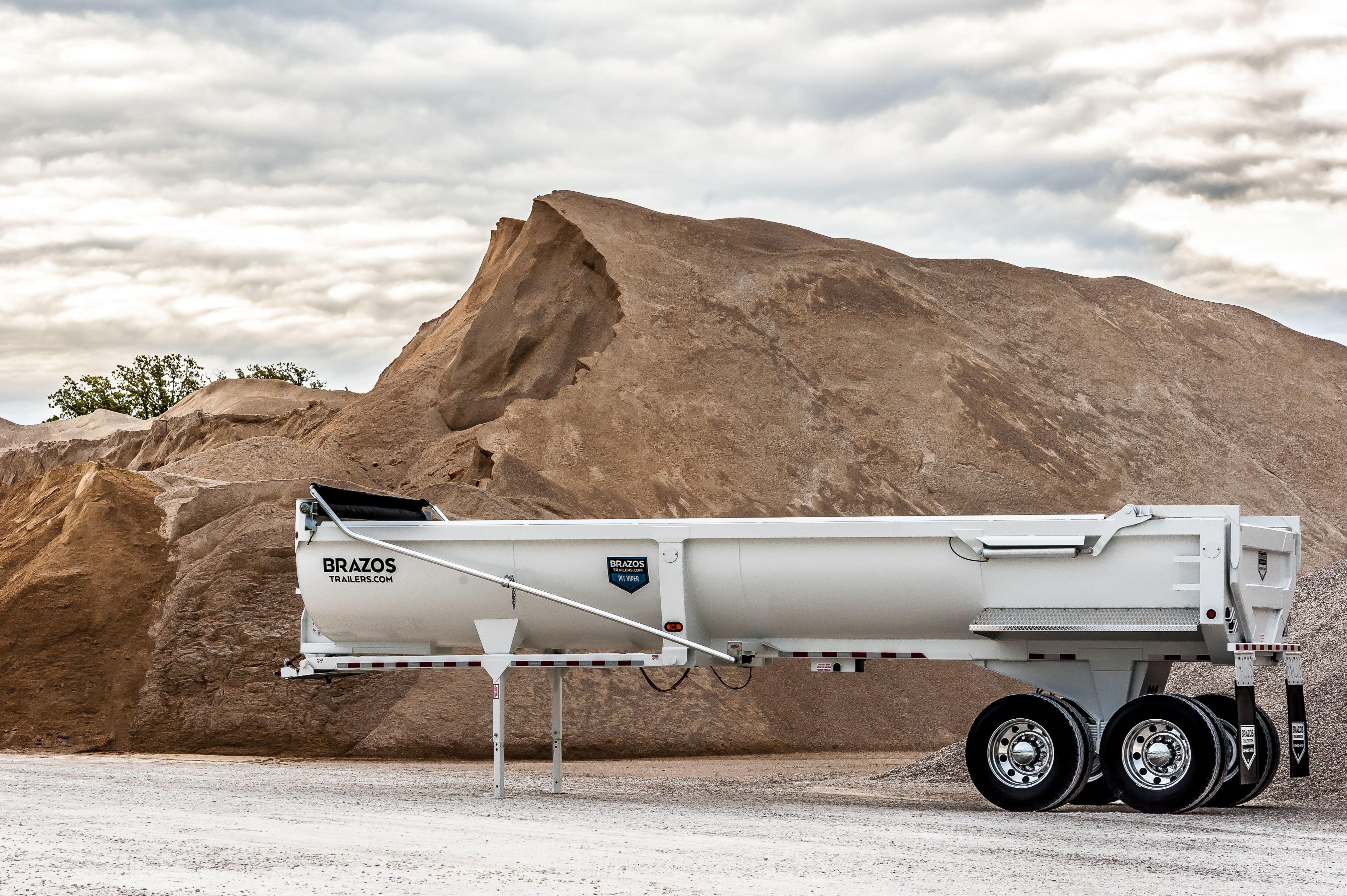 The Pit Viper End Dump Trailer by Brazos Trailers is engineered for durability and efficiency. Constructed with a 1/4" AR450 wear plate belly, it ensures longevity and resistance to wear. Equipped with tandem 25,000 lb axles and a hydraulic cylinder hoist, it handles demanding tasks with ease. Additional features include full high-definition LED lighting, an electric flip tarp, and a high-lift locking tailgate. Available in black, white, red, or custom colors. Starting at $38,350....